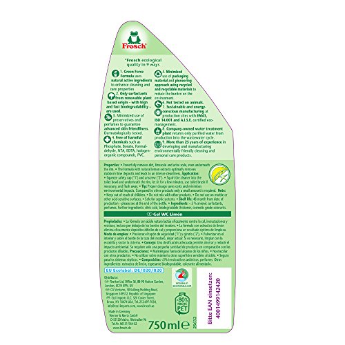 -. Feature : GREEN CLEANING, WITHOUT COMPROMISE. Germany's most trusted household cleaning brand is available in the US! / Powerfully removes dirt, grime, soap scum, and residue including limescale and urine scale, even underneath the rim / The formula with natural lemon extracts optimally removes stubborn lime deposits and leads to an intense cleanliness / 100% vegan, never tested on animals / Product of Germany, EU Ecolabel Certified