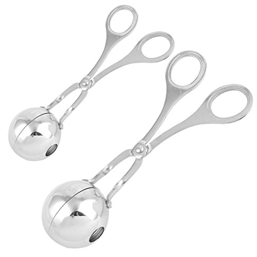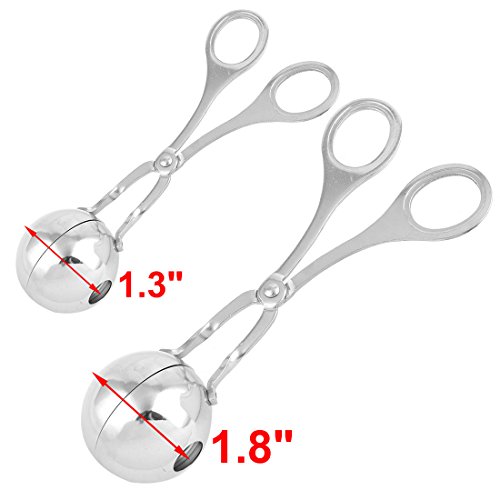 uxcell Metal Home Kitchen Riceball Meatball Maker Mould Clip Tong 2 in 1 Silver Tone