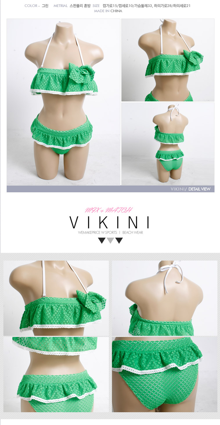 Green Knit Frill Tube Top Lace Bikini 2pcs