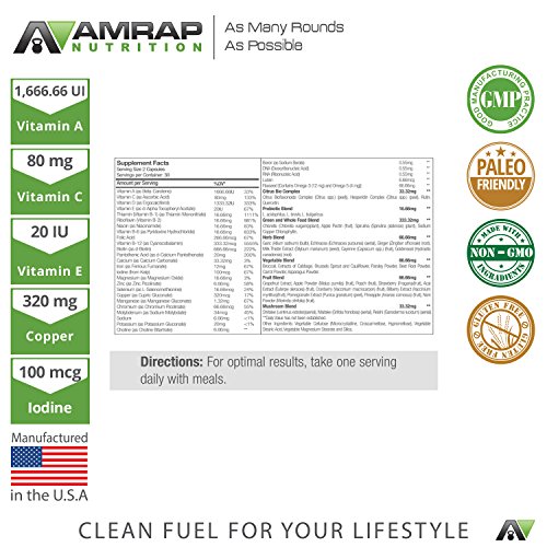 -. Title : AMRAP Nutrition | Multi Plus - Whole Food Multivitamin Supplement - Contains All Essential Daily Nutrients for Men - Women - With Probiotics - Enzymes for Complete Absorption