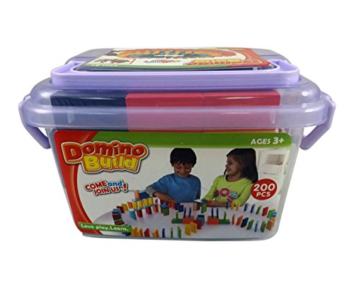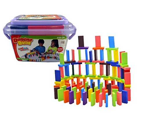 -. Title : Bucket of Domino 200-piece Wooden Dominoes Building Blocks Kids Racing Toy Play Set
