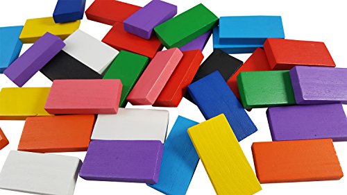 -. Feature : 200 Piece Wooden Dominoes Value Play Set / Made of 100% Real Wood, Non-Toxic, Safe for Kids / 10 Different Colors - black, white, yellow, orange, red, blue, green, purple, pink, light blue / Includes Portable Transparent Storage Bucket / Each Domino Measures: 4.6 cm high x 2.4 wide x 0.7 cm deep