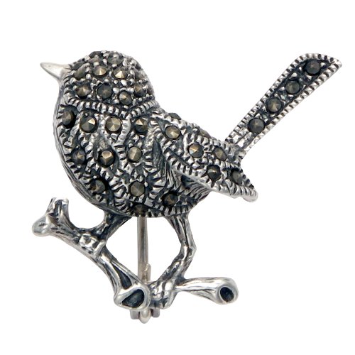 -. Title : Sterling Silver Chickadee Pin w/Marcasite Stones