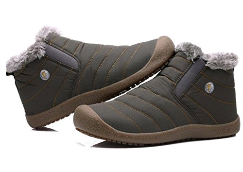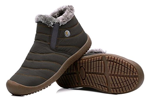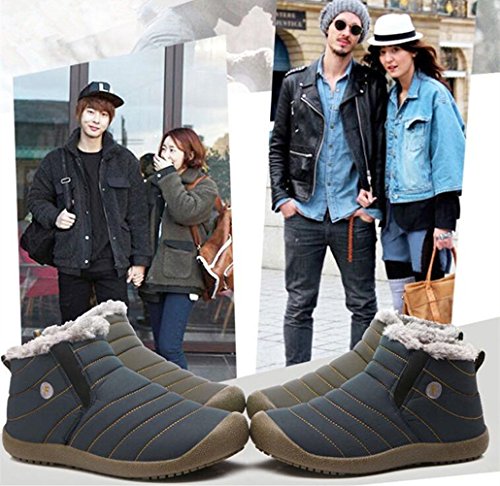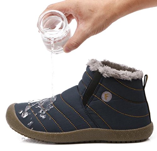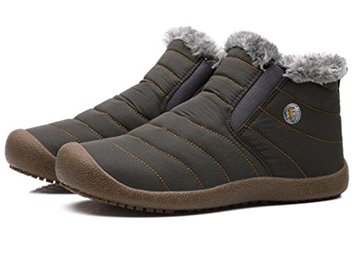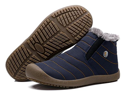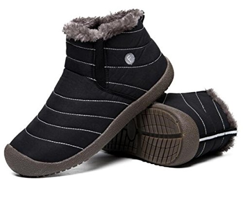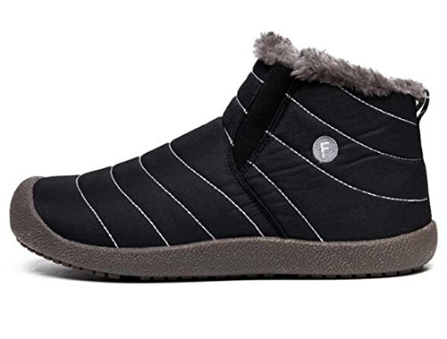Binding : Apparel Product Description Material:Synthetic Inside material:Fleece Sole: Rubber Heel Type: Flat SIZE INFORMATION: Insole Length=Foot Length 0.5-1cm Please according to our size shoes inside long choice the correct size.If you feet have a little wide or fact, please choice one big size.Thank you! US Size-------------CN Size-----------Shoes inside length(CM)/(inches) Women 6-------------------36---------------22-22.5cm/8.6-8.8in Women 6.5-----------------37---------------22.5-23cm/8.8-9in Women 7-------------------38---------------23-23.5cm/9-9.2in Women 7.5/Men 7---------39---------------23.5-24cm/9.2-9.4in Women 8.5/Men 7.5-------40---------------24-24.5cm/9.4-9.6in Women 9/Men 8-----------41---------------24.5-25cm/9.6-9.8in Women 10/Men 9---------42---------------25-25.5cm/9.8-10in Women 10.5/Men 9.5-----43---------------25.5-26cm/10-10.2in Men 10--------------------44---------------26-26.5cm/10.2-10.4in Men 11--------------------45---------------26.5-27cm/10.4-10.6in Men 12--------------------46---------------27-27.5cm/10.6-10.8in Men 13--------------------47---------------27.5-28cm/10.8-11in Men 14--------------------48---------------28-28.5cm/11-11.2in This boots features waterproof fabric upper, warm fur lining, and slip resistant, durable, rubber outsole. This weatherproof boots keep your feet warm and dry for those freezing days. Perfect fur lining keeps us warm in freezing winter. Durable Rubber sole and good-looking appearance. Always all-match with this ankle boots. Slip-on style makes the boots easy to take on/off. These boots are really warmly lined and solid and were perfect for the outdoors men or women. Interior comfort is provided by the soft lining. Suitable for all kinds of people: office workers, students and so on. This may be the best choice for you.The perfect boot for the winter.
