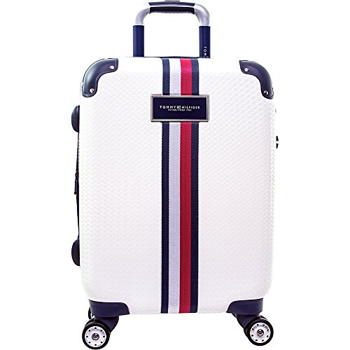 -. Feature : Distinctive, textured basket weave styling with Tommy Hilfiger global stripe webbing down center panel / 8 wheel spinner for easy rolling and superb maneuverability / Expandable for maximum packing capacity with a built in TSA combination lock (no key necessary or included) for additional security / Fully lined interior with multiple sectioned, zippered curtain, compression straps to keep clothing secure, and zippered mesh pockets / 7.5x14x21
