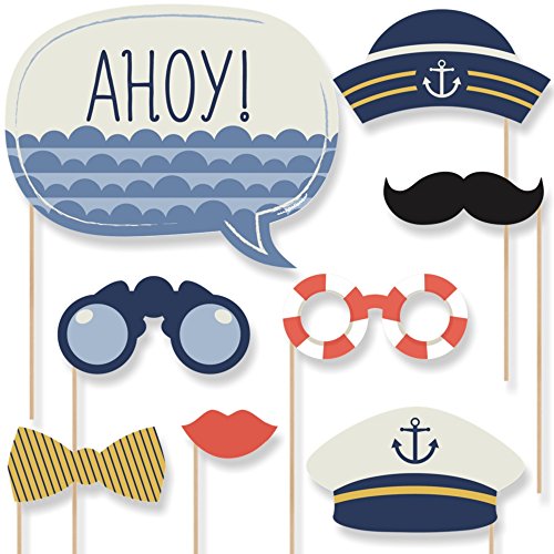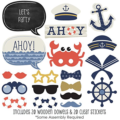 20-Piece Baby Shower or Birthday Party Photo Booth Props Kit INCLUDES 20 Ahoy - Nautical photo booth props, 20 wooden dowel sticks and adhesives for assembly. EASY ASSEMBLY: Simply attach the printed DIY photo booth props to the wooden dowels with included adhesive and reinforcing stickers.