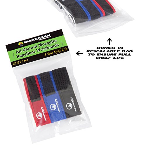 -. Feature : 100% deet free - made of all natural ingredients / Three year shelf life if kept in sealed bag and 15 days protection once opened / Color pack - Red, Blue & Black (1 each) / Wristband dimensions: length: 9 inches, width: 1.25 inches, height: 0.25 inches