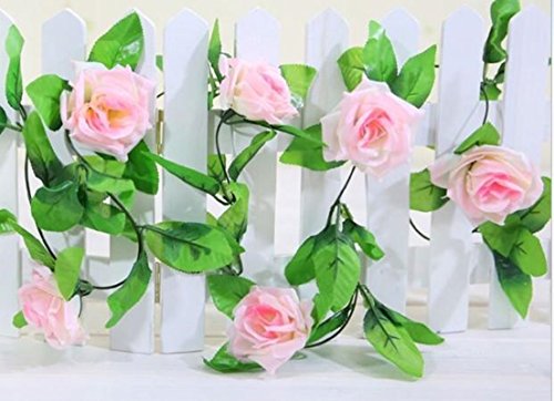 Material:silk flowers,leaves.plastic vine,each garland 7.9FT long,flowers 3.1inches in diameter,there are 9 flowers on each flower garland,color:pink