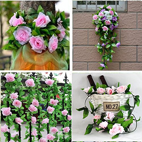 Pakage include:4xartificial silk rose garland,add a touch of color and romance to your home with these fake silk roses ivy vine artificial flowers with green leaves