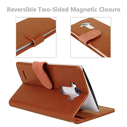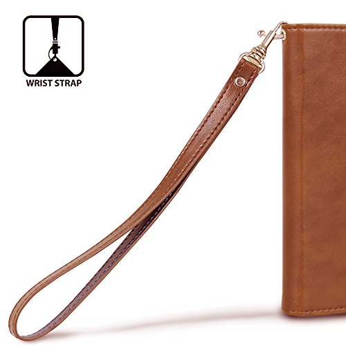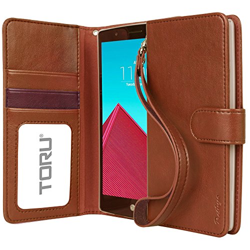 LG G4 Case, TORU [Prestizio Wallet] G4 Wallet Case with [CARD SLOT][ID HOLDER][KICKSTAND][WRIST STRAP] - Premium Wristlet Leather Flip Cover for LG G4 - Brown