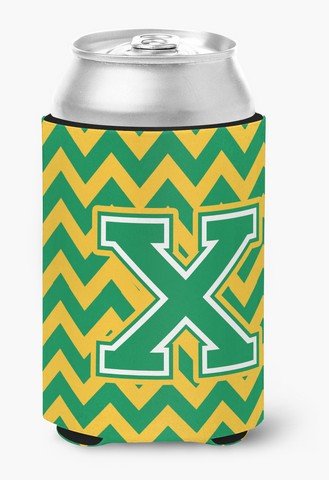 Caroline's Treasures CJ1059-XCC Letter X Chevron Green and Gold Can or Bottle Hugger, Multicolor