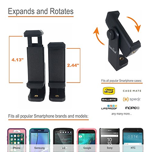 CELL PHONE TRIPOD ADAPTER compatible with Android, Windows, Blackberry, Apple Smartphones measuring 2.44" to 4.06" wide; Universal mount to iPhone 7 Plus, 7, 6 Plus, 6s Plus, 6, 5, Samsung Galaxy S7 Edge, S8+, S7, S6, S5, Note 5, 4, 3, Pixel XL more