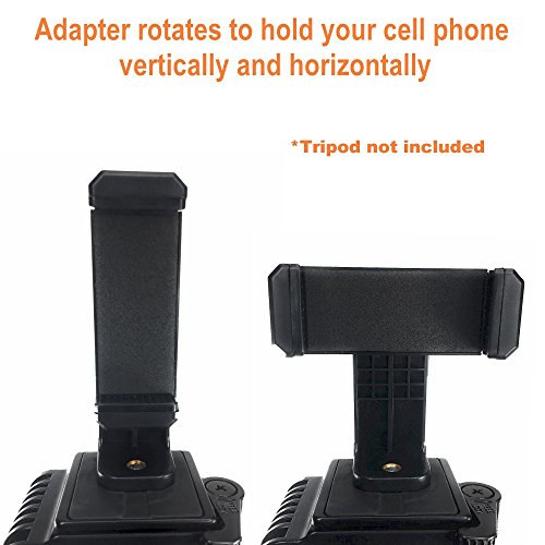 FITS ANY STANDARD TRIPOD with a 1/4"-20 threading screw; Very easy to use and setup, just adjust the knob on the back of the adapter to use it in either position or take it off the knob and just use the rotating adapter itself (tripod not included)