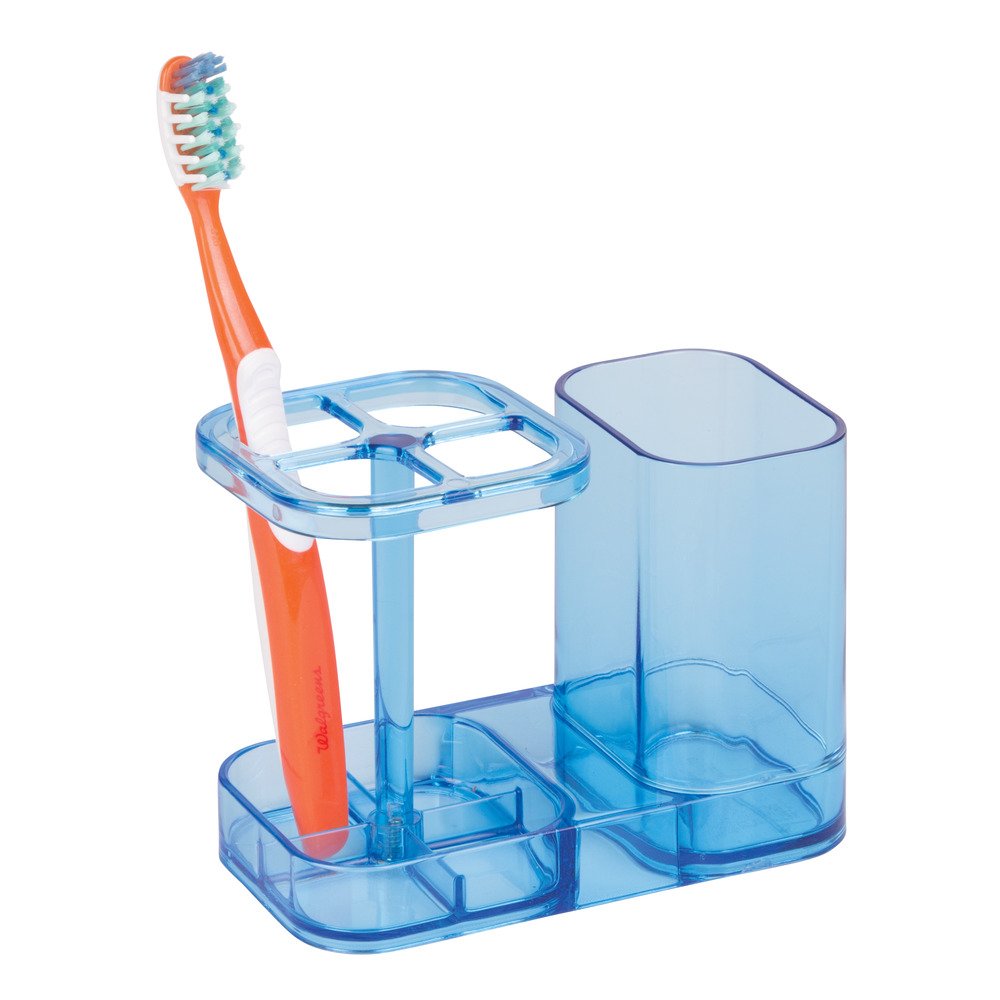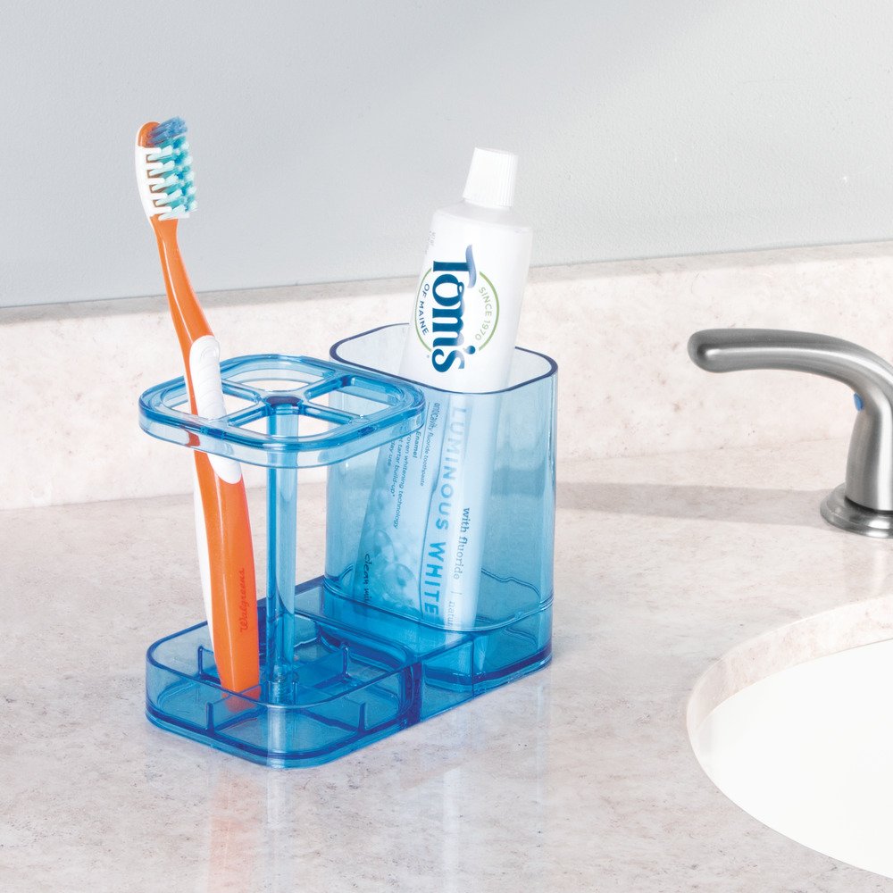 Compact design convenient for storing toothbrush and toothpaste in cabinet.