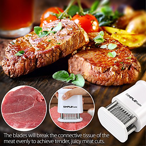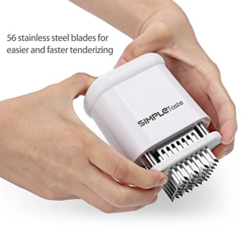 - Easy To Use - Our compact SimpleTaste meat tenderizer is easy to use and clean. Unlock the tenderizer, place it over the first section of meat, and, press down. Next, keep moving the tenderizer to different parts of the meat and pressing down until all the meat has been tenderized. After use, just clean the blades with a small brush and keep it out of the reach of children.