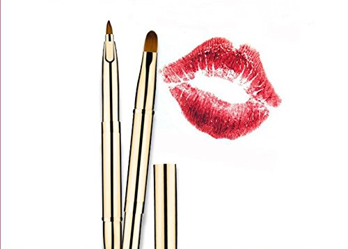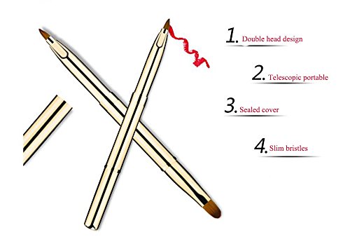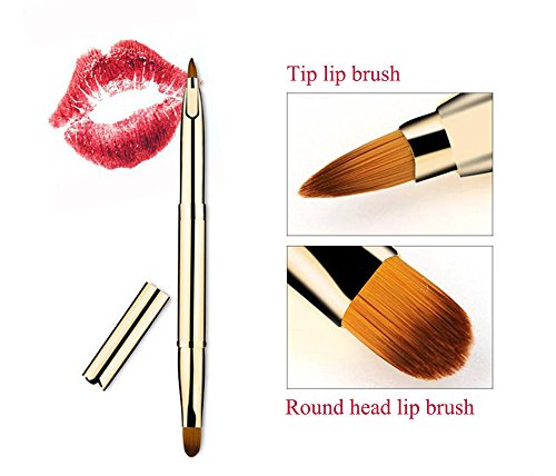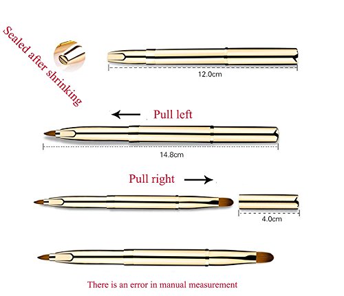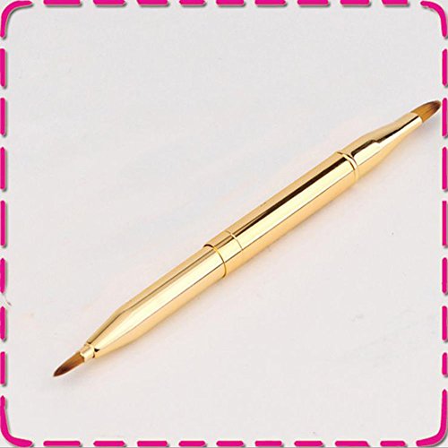 Qpower 1 Pc Lip Brush Nylon Hair Double-headed Retractable Cosmetic Brush Portable Gold (Double)