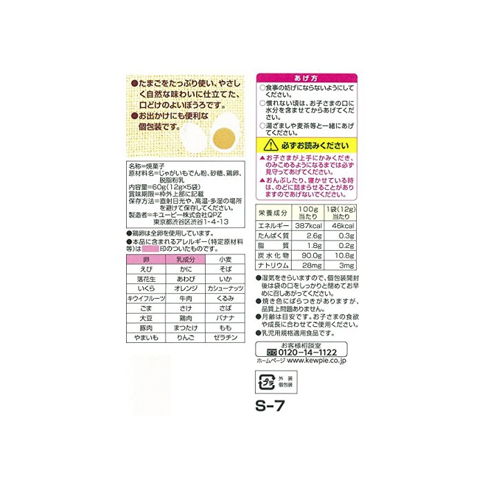 원본상품명: キユ?ピ? たまごたっぷりぼうろ 12g×5袋