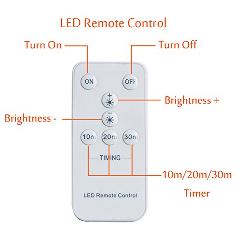 - Main Power via 2 x AA battery(not included),It comes with a Smart 10 Meters Range of Remote Control which with On/Off,Dimmer+/-,Timing turn off lights in 10mins or 20mins or 30mins for Options.