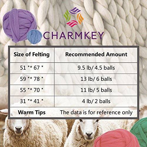 - ✅SPECIFICATION - Hottest New Arrivals: 21.5 microns with staple length of 23 - 27 inches/ 60 - 70mm. (Felting size recomendation: 30x50inch: 2balls, 40x60inch: 3balls, 50x70inch: 4.5balls, 60x80inch: 6balls, for reference only, difference depends on the tightness of knitting)