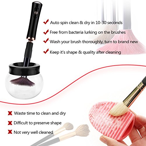 - ★[HIGH EFFICIENT] - Makeup brush cleaner could clean and dry all size makeup brushes thoroughly in just a few seconds, then your makeup brushes are immediately ready to re-use. Keeping away from the long cleaning time and help to improve your makeup experience.