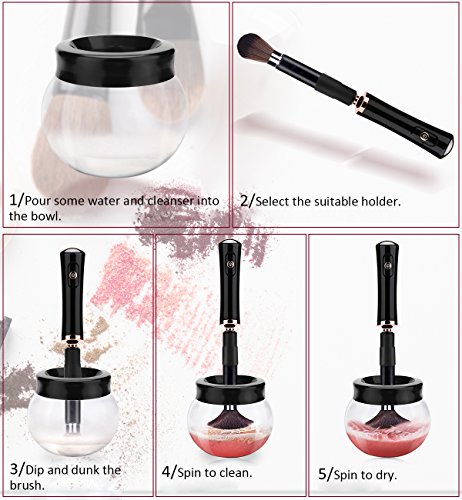 - ★[SIMPLE TO USE] - Just 3 Steps for cleaning makeup brushes: 1. Attach the brush to the spinner; 2. Pour water and soap into the bowl; 3. Dip & Spin to Rinse, Spin to dry. Your favorite brushes will be long-lasting use, stay soft and keep nice by thoroughly cleaning.