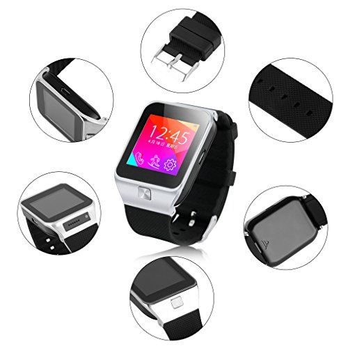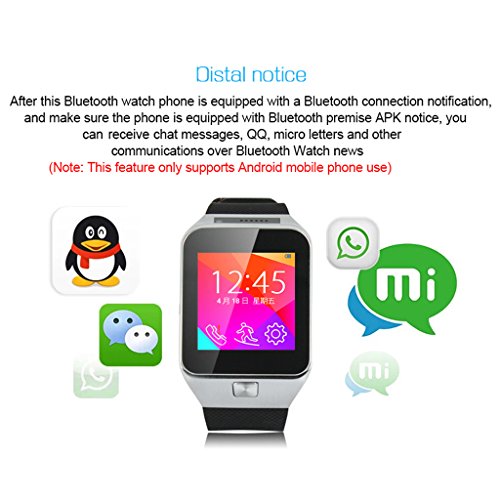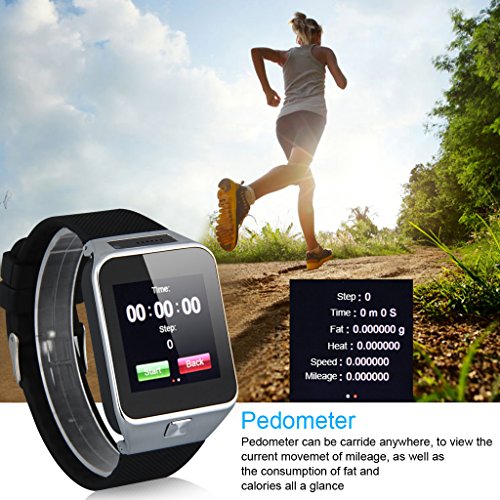 - Feature : 1. Cell Phone Function: This is the Excelvan Smart Watch that combines popular design with innovation technology. The smart watch is a quad band GSM (850MHz, 900MHz, 1800MHz, 1900MHz) unlocked phone that can be used anywhere all over the world. Sticking in a 2G SIM card and you gain an amazing communication device that works like a cell phone on your wrist. / 2. Sync Function ; a.Sync phonebook with smartphones; b.Sync SMS only with Android devices; c. Sync incoming call with smartphones; d.Sync music with smartphones.e, bt app Notifier / 3. Anti-lost; Alarm with sound or vibration if leaving your smartphone away from 5- 10 meters.-4. Sedentary Reminder;Take a rest to avoid fatigue! Our smart watch havs sedentary reminder function to keep fit! / 5. Remote Capture;You can take photos of whole family without other help, just use / 7. Sports Partner; This smart watch can record time, steps, calories and distance.(these datas just roughly show your exercise and only shows on watch, NO APP) -8. Sleep Monitor;When you sleep, it will monitor your sleep.(these datas just roughly show your exercise and only shows on watch, NO APP) -9 ,Other features: Alarm, FM, Music, image viewer, Calendar, Calculator, Sound Recorder, Video Recorder, Video Player