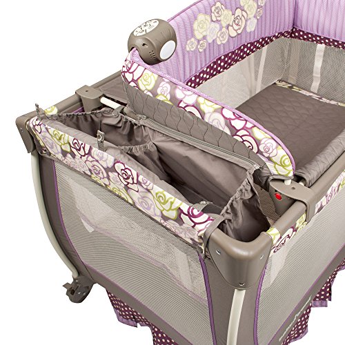 - Feature : Includes Close N Cozy bassinet; Have your baby safely at your bedside / Removable full bassinet, Flip away changing table / One-hand locking mechanism for simple easy fold / Electronic music center with volume control, nightlight, and vibration / Large wheels with brakes