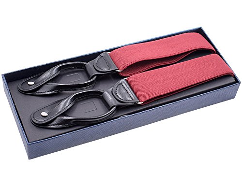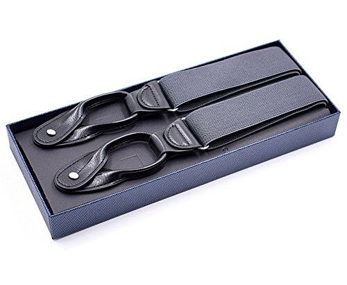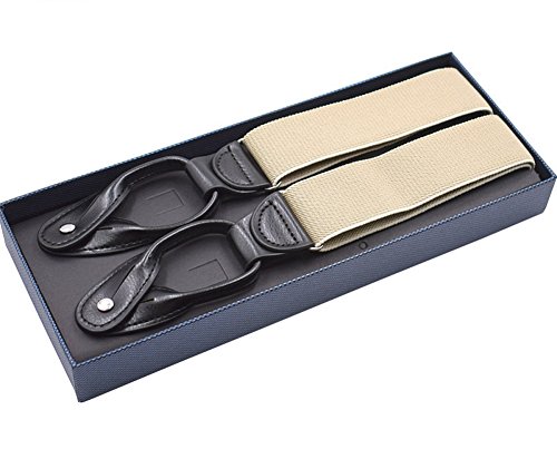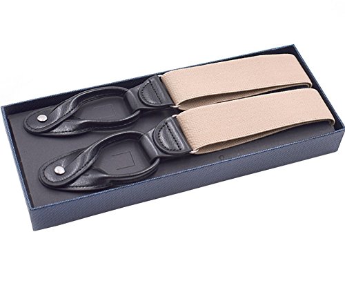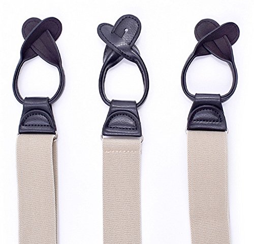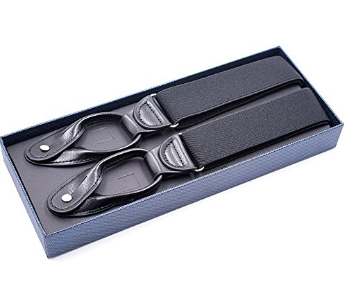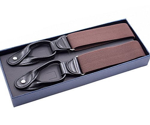 Unisex Women Men Leather End Tuxedo Suspenders Y Back Adjustable and Elastic Button Pant Solid Trouser Bracess