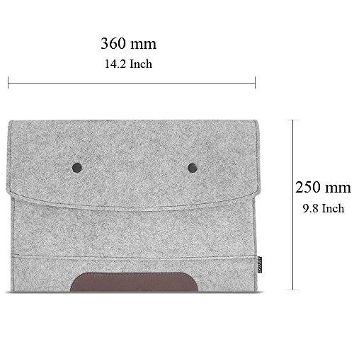 [Description] Fashionable_elegant_slim_soft and lightweight_easily slide into your briefcase_ backpack_ or other bag Made of high quality felt_ultra protective for your computer from scratches_bump_shock etc. The buttons allows a very easy and quick access to your inside device With beautiful accessory bag for mouse etc. and removable pad as pocket or mouse pad Stylish_elegant_slim_and lightweight_easily slide into your briefcase_ backpack_ or other bag Made of high quality felt_ultra protective for your devices from scratches_bump_shock etc. The button closure allows a very easy and quick access to your inside device A additional front pocke for mouse_phone_wallet etc. Exterior size:36.5CM*25.5CM*0.5CM(14.4``*10``*0.2``);Interior size:35.5CM*23.5CM(14``*9.3``)_Fits iPad Pro 12.9 Inch / Apple MacBook Air 13.3 Inch / MacBook Pro Retina 13.3 Inch (Model A1502 / A1425 etc.) / Most 13-13.3 Tablet PC etc.