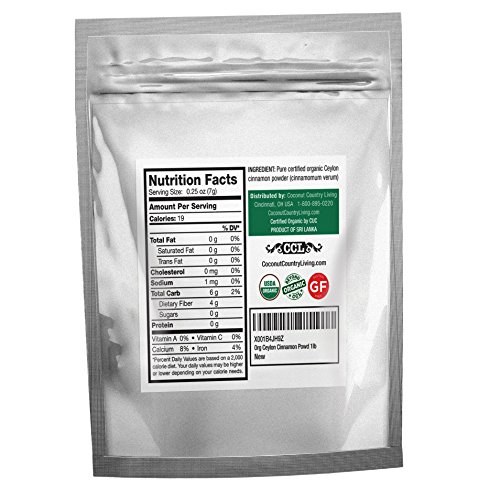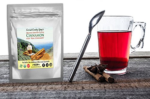 Finest quality USDA Certified Organic Ceylon cinnamon powder from ceylon cinnamon sticks with ultra low coumarin (2-5 ppm), spice, as CCL gives 5% of profits from each pouch to protect the food supply against dangerous pesticides and GMOs