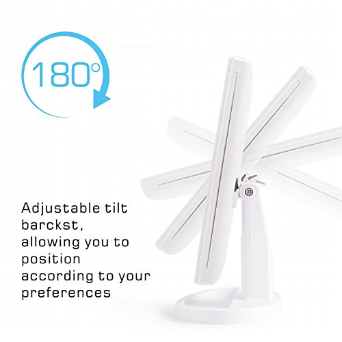 - 180°Free Rotation?This mirror is freely adjusted and fixed, makes it convenient for you to adjust the most viewing angle as you need. The groove of the mirror base allows you place some jewelry and cosmetics.