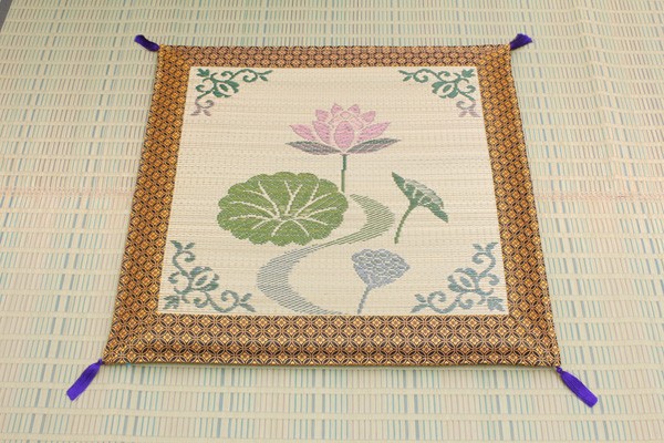 【商品名】純国産/日本製 袋織 い草御前(仏前)座布団 『蓮の花』 約70×70cm