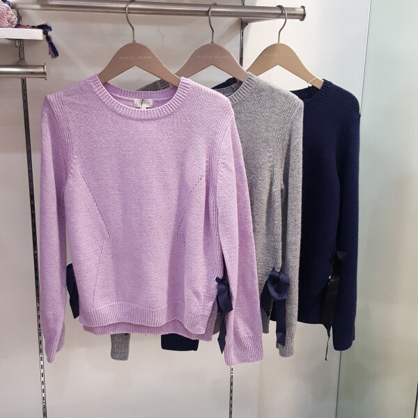 옆리본으로 포인트를 준 데일리하게 잘입어질 니트티입니다. 너무 두껍지 않아 지금부터 봄까지 너무 잘 입어질 스타일입니다.총장 57cm