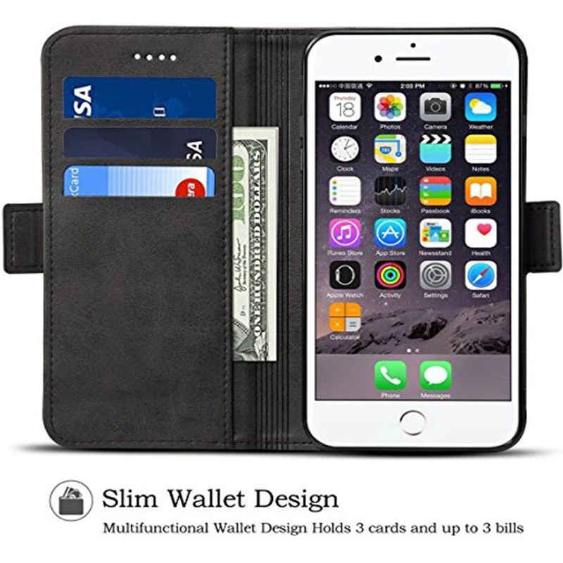 Feature 2:Flip Stand Wallet PU Leather Case For iphone 6 6s 7 8