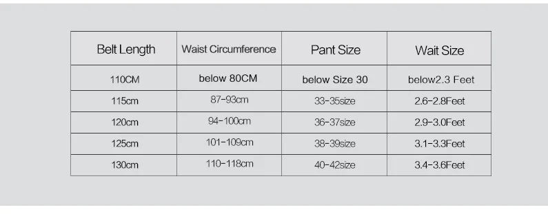 Belt Length: 110cm 115cm 120cm 125cm 130cm