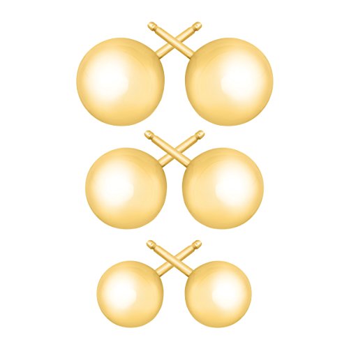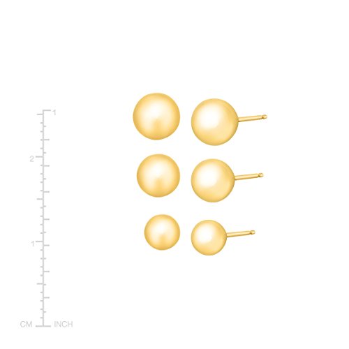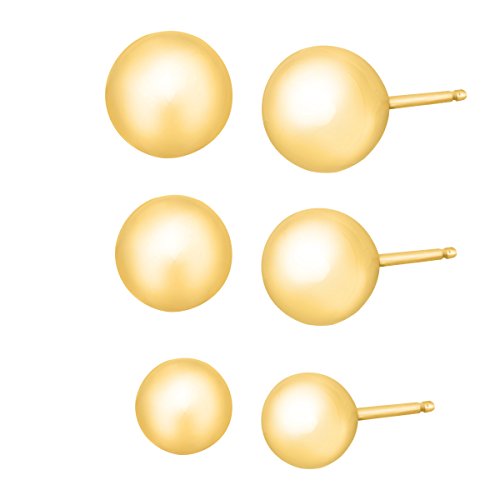 Studs for every mood! Ball studs are crafted in 14K gold and range from 4 to 6 mm in diameter so you can be as bold or as simple as you desire. Smallest pair measures 1/8 inches in diameter and the largest pair measure 1/4 inches in diameter and feature posts with friction-back back-findings.Feature