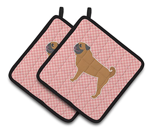 Caroline's Treasures Pug Checkerboard Pink Pair of Pot Holders BB3647PTHD, 7.5HX7.5W, Multicolor