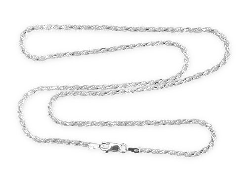 Sterling silver 1.8mm rope chain necklace. The rope chain is an intricate look that catches the light in twisting lines of silver facets. This is a good chain for wearing alone, or with charms. Made in Italy. Available in 18", 20" and 24" lengths.Feature