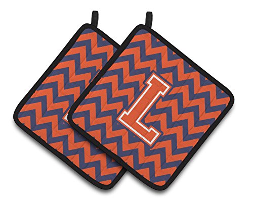Caroline's Treasures Letter L Chevron Orange & Blue Pair of Pot Holders CJ1042-LPTHD, 7.5HX7.5W, Multicolor