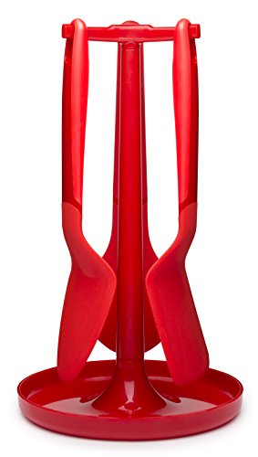 Zak Designs Kitchen to Table Sweety Spoon, Spatula, Pie Server and Stand Set, Red