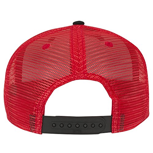 (Otto Caps)/Accessories/Hats/DIRECT FROM USA/Otto Square Flat Visor Otto Snap 6 Panel Mesh Back Trucker Snapback Hat - Blk/Blk/Red