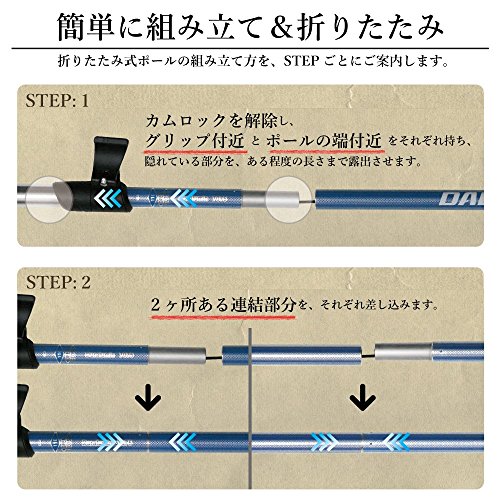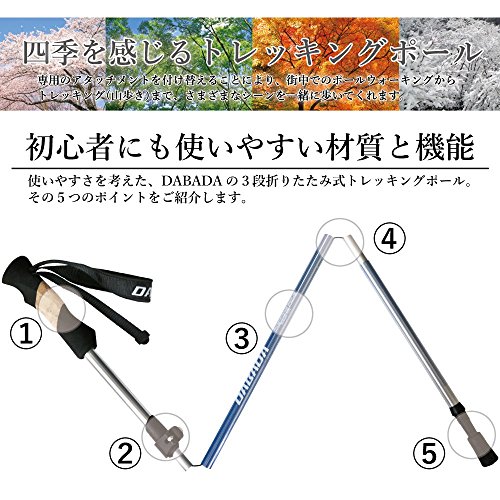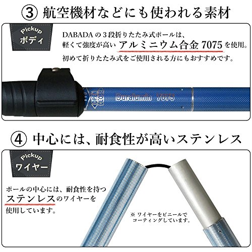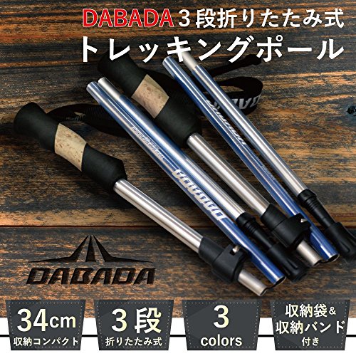 등산 스틱 DABADA(다《바다》) DABADA(다바다) 경량 알루미늄제 트래킹 폴 폴딩식 2개 세트 한정 키트부 【경량247g 콤팩트 최소34cm】(블루/실버)