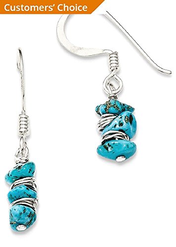 ICECARATS DESIGNER JEWELRY 925 STERLING SILVER BLUE TURQUOISE CHIP DROP DANGLE CHANDELIER EARRINGS
