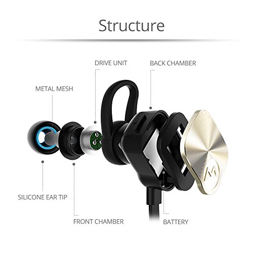 Mpow Wolverine Bluetooth 4.1 Wireless Sports Headphones, In-ear Running Jogging Stereo Headsets, Gold