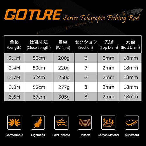원본상품명: Goture(ゴチュ?ル) ロッド フィッシング 釣り竿 コンパクトロッド 炭素 ナチュラルウォ?タ? ソルトウォ?タ 2.4M