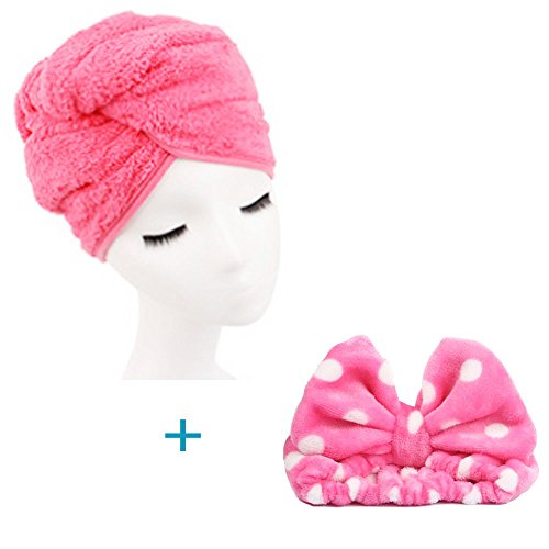 HappyDaily Lovely Supersoft Hair Dry Cap Set - Quick Drying Bath Towel and Headband, Set of 2