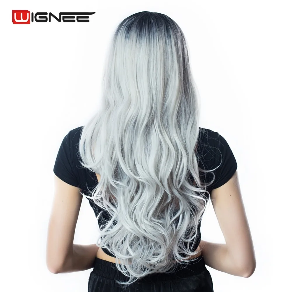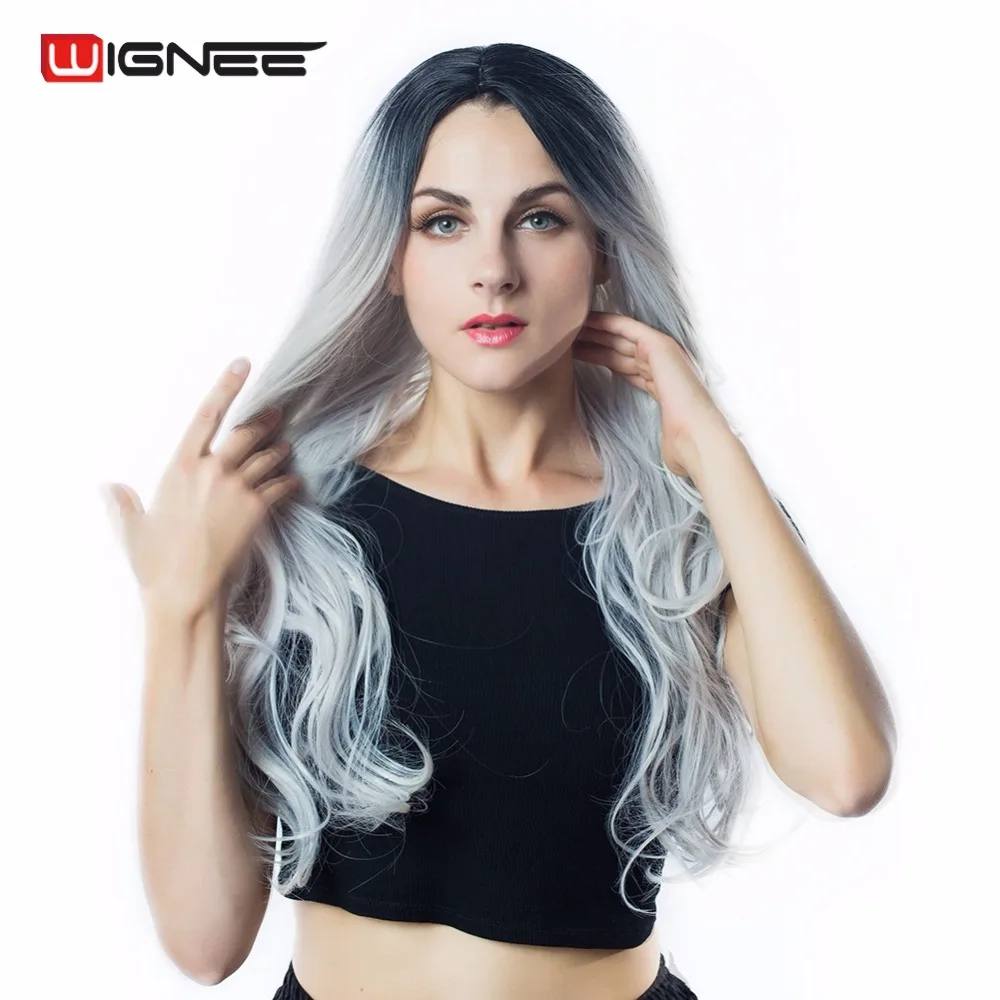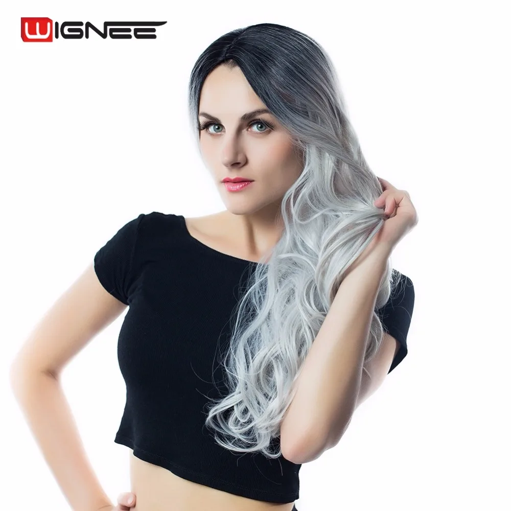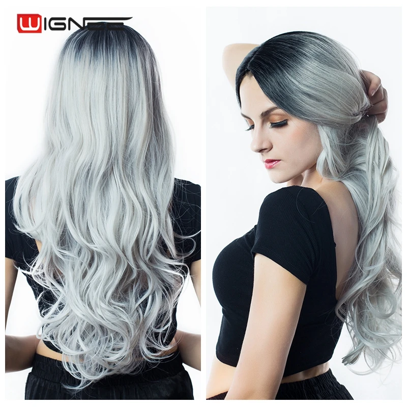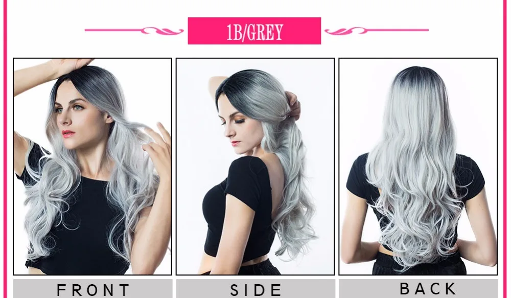 Color :Black Root To Light Gray Synthetic Ombre Wig