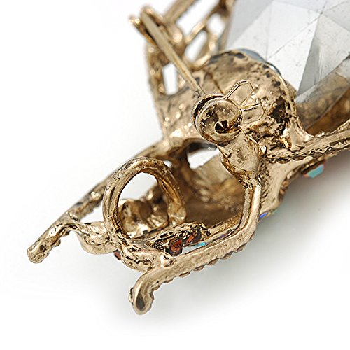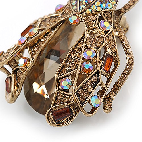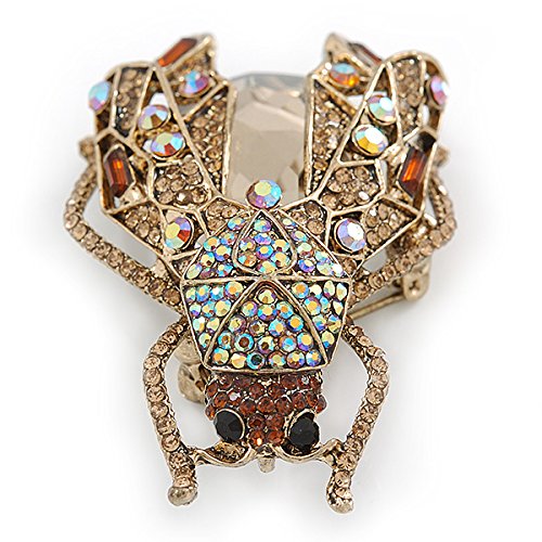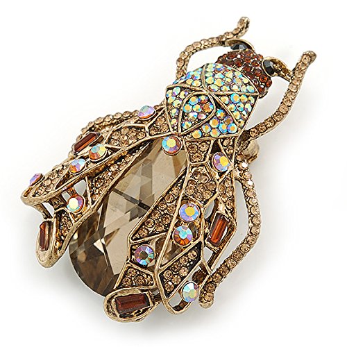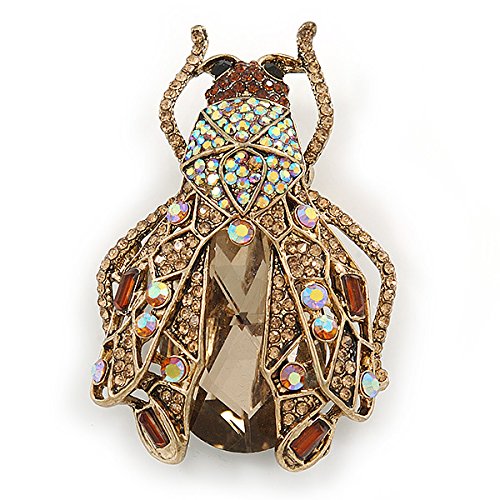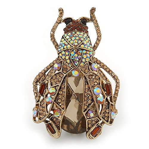Brighten up your outfit with this unique Large Crystal Bug Brooch In Gold Tone. Featuring a large bug design, crafted in gold tone metal and heavily encrusted with crystals in hues of citrine, amber and brown. The body made of an oval cut, faceted glass stone. The brooch measures about 60mm L x 40mm W, and fastens with a flag pin and revolver. The best part? After you've worked the brooch with your blazers, handbags and scarves, clip its enhancer onto a chain, and enjoy the look as a pendant.Feature