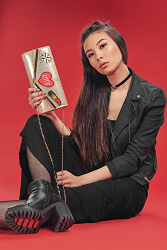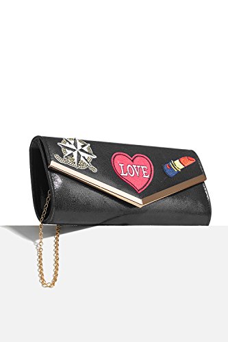 -. Feature : Shiny envelope clutch with fabric appliques on the flap front, a magnetic clasp, a detachable chain strap. Fully lined satin interior has a pocket for credit cards. ApproP.R.Iate for parties, evenings out, casual outings. / Strong and reliable magnetic clasp closure keeps your belongings safe. All metal parts are resistant to rusting, corrosion, oxidation and tarnishing. The colors stay strong, do not fade with time and will not leave marks on you clothing. / Keep your hands free! The length of the drop-in chain strap (47") allows you to wear the clutch purse as a crossbody or shoulder bag that hits at the hip. / The handbag fits most models of cell phones including iPhone 6 Plus / iPhone 7 Plus / Samsung S7 Edge. Approximate measurements of the clutch: 10" (L) x 4.7" (H) x 1.8" (W). / Buy with confidence! All our handbags have 100% 30 days money back guarantee. Top quality backed with exclusive lifetime warranty!