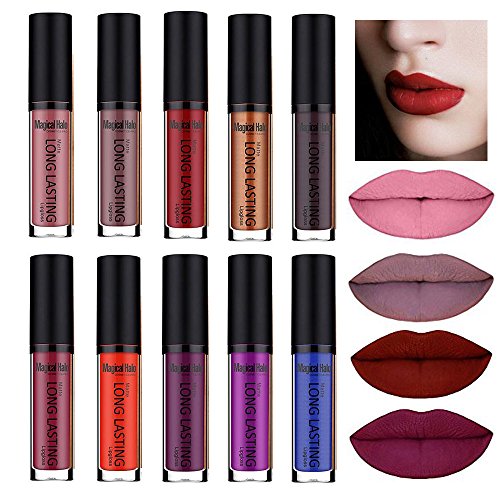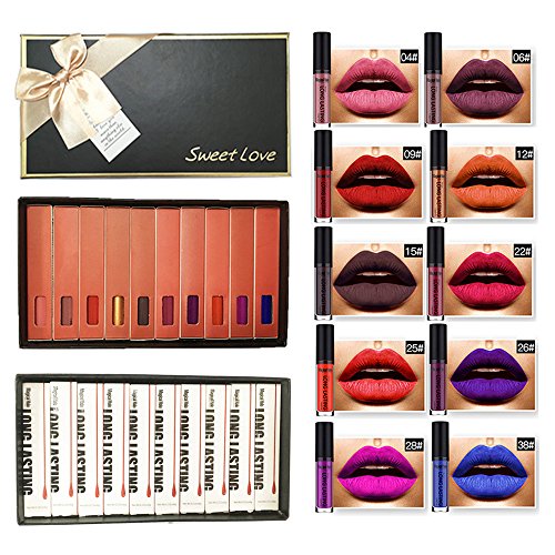 Coosa 10PCS 10 Colors Liquid Lipstick Waterproof Long Lasting Matte Lip Gloss Set for Cosmetic Makeup (10X)
